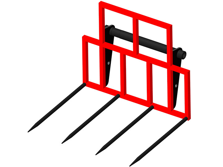 Работа с грузами круглой и квадратной формы (тюки, рулоны, мешки и проч.). Возможность варьировать количество и длину зубьев, устанавливать усиленные клыки. Опционально на вилы можно монтировать гидровыталкиватель груза и верхние зубья.
